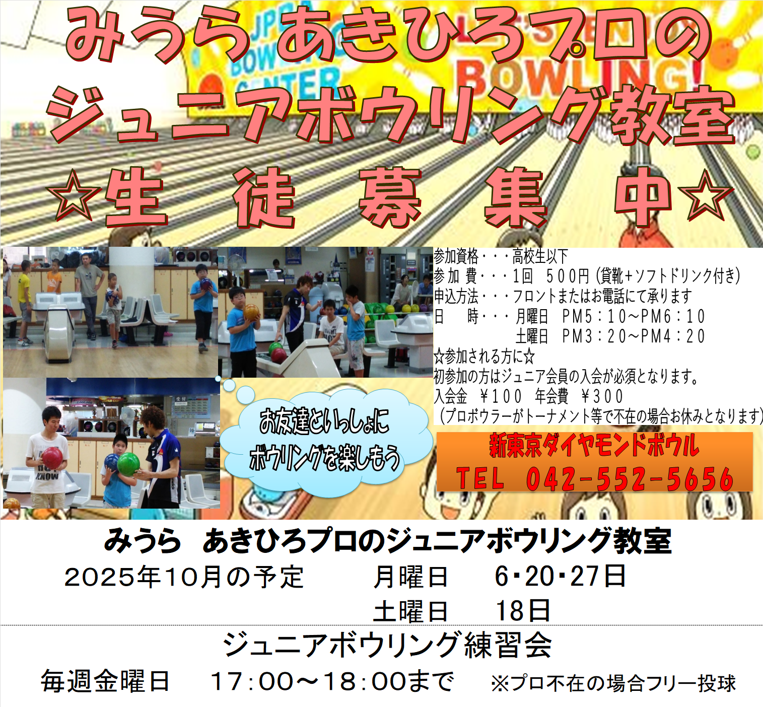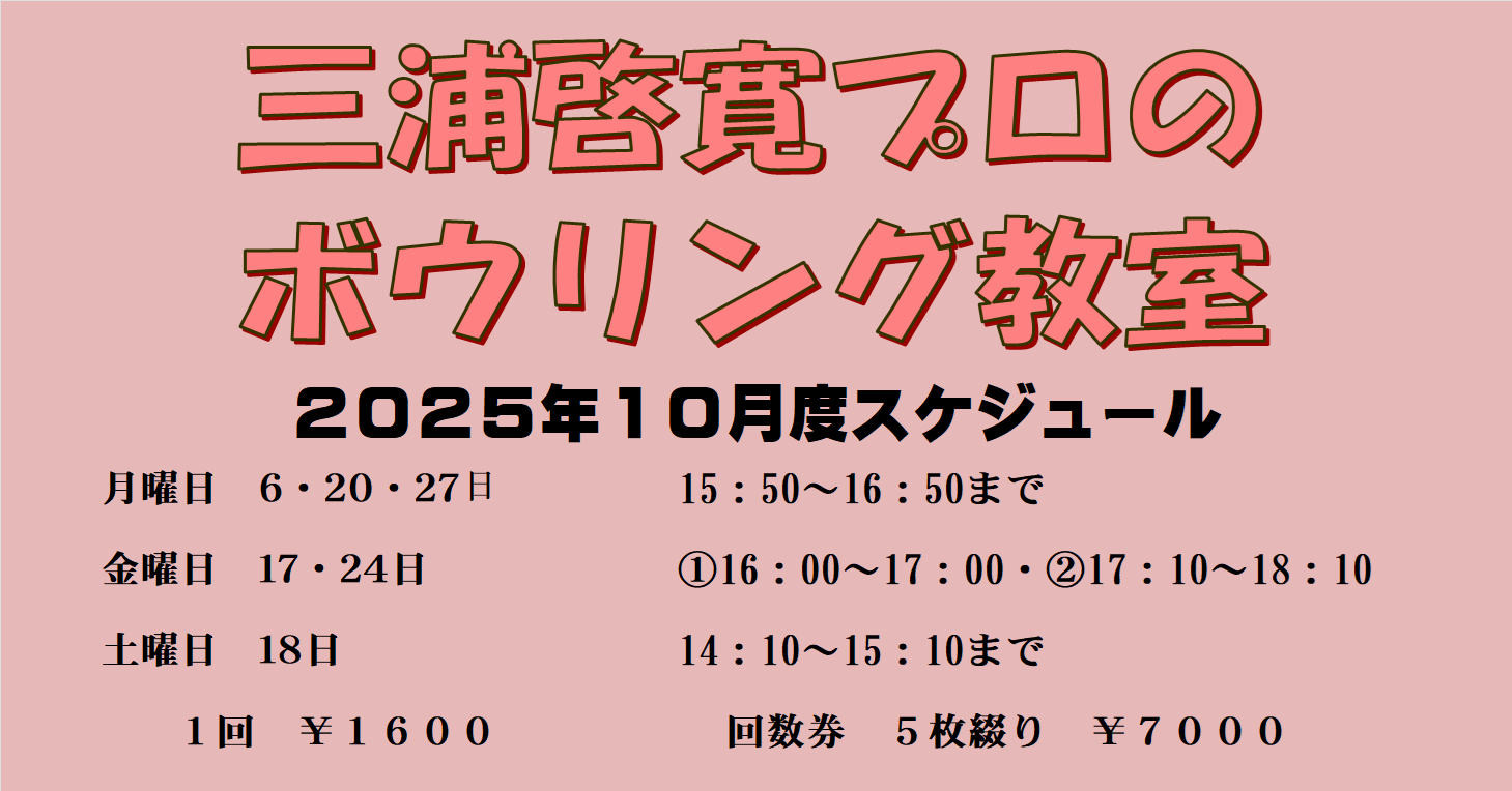 三浦 啓寛プロ10月度各種教室を更新いたしました。